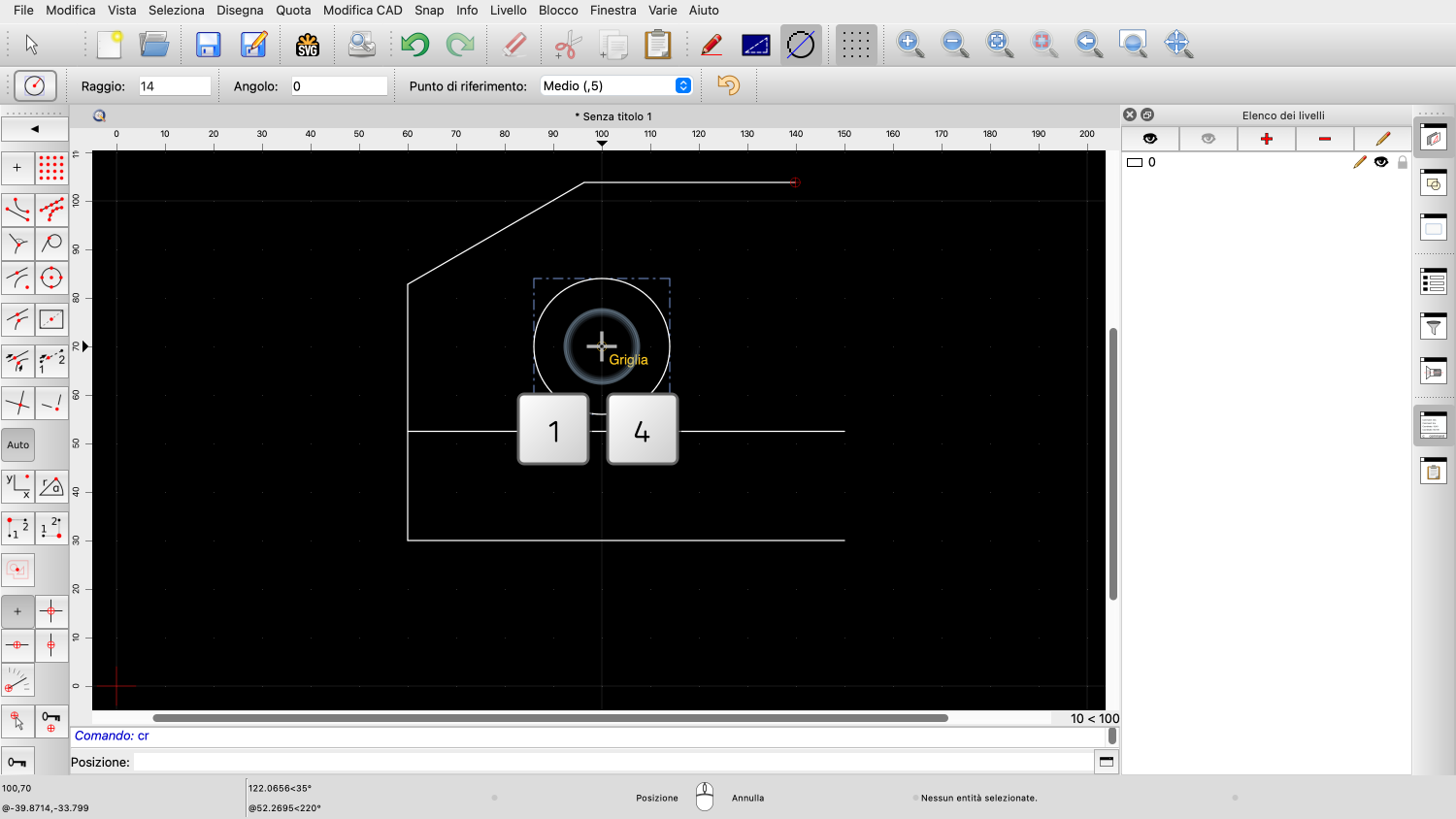 È sufficiente premere i tasti sulla tastiera e QCAD avvia lo strumento.