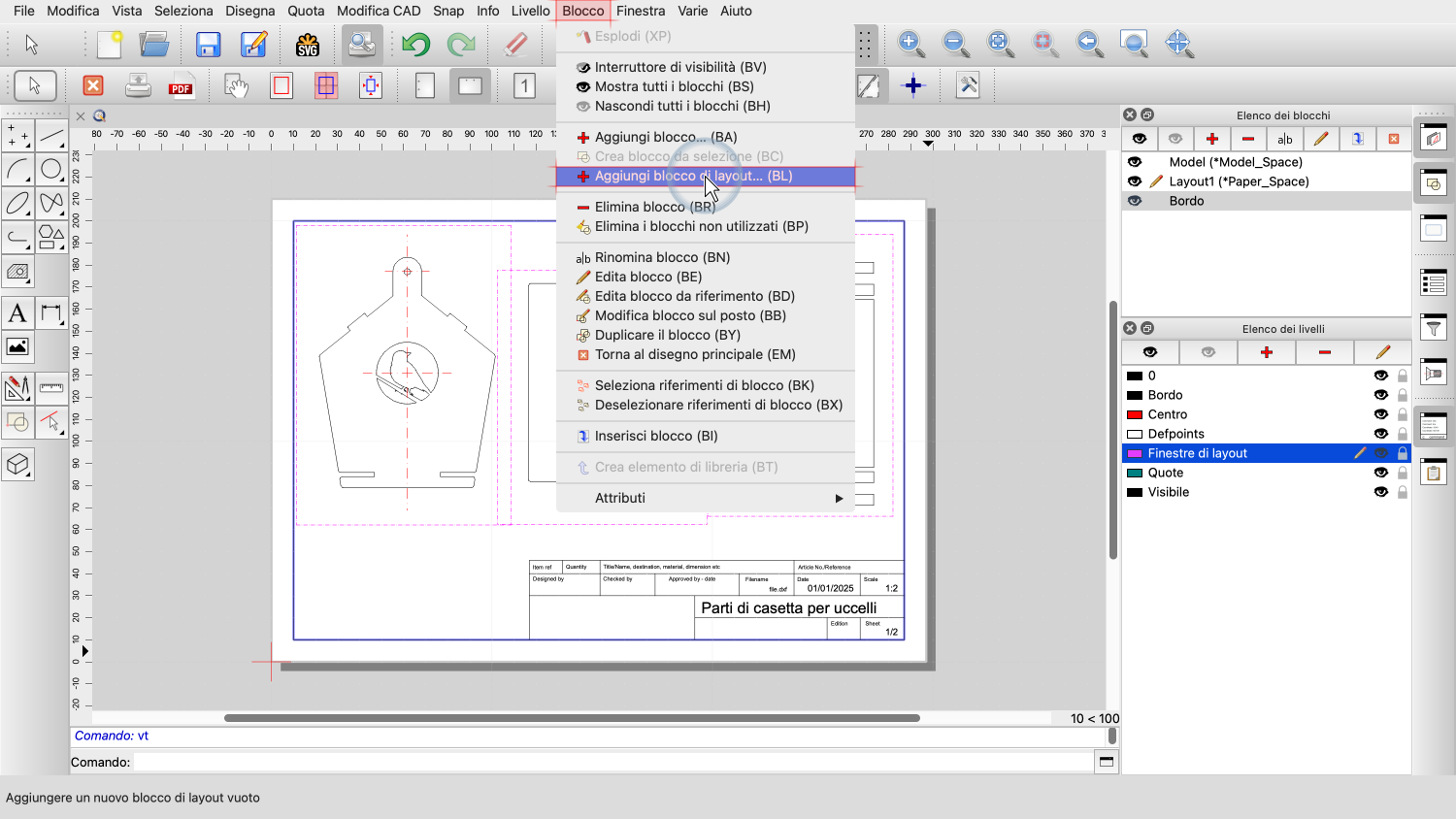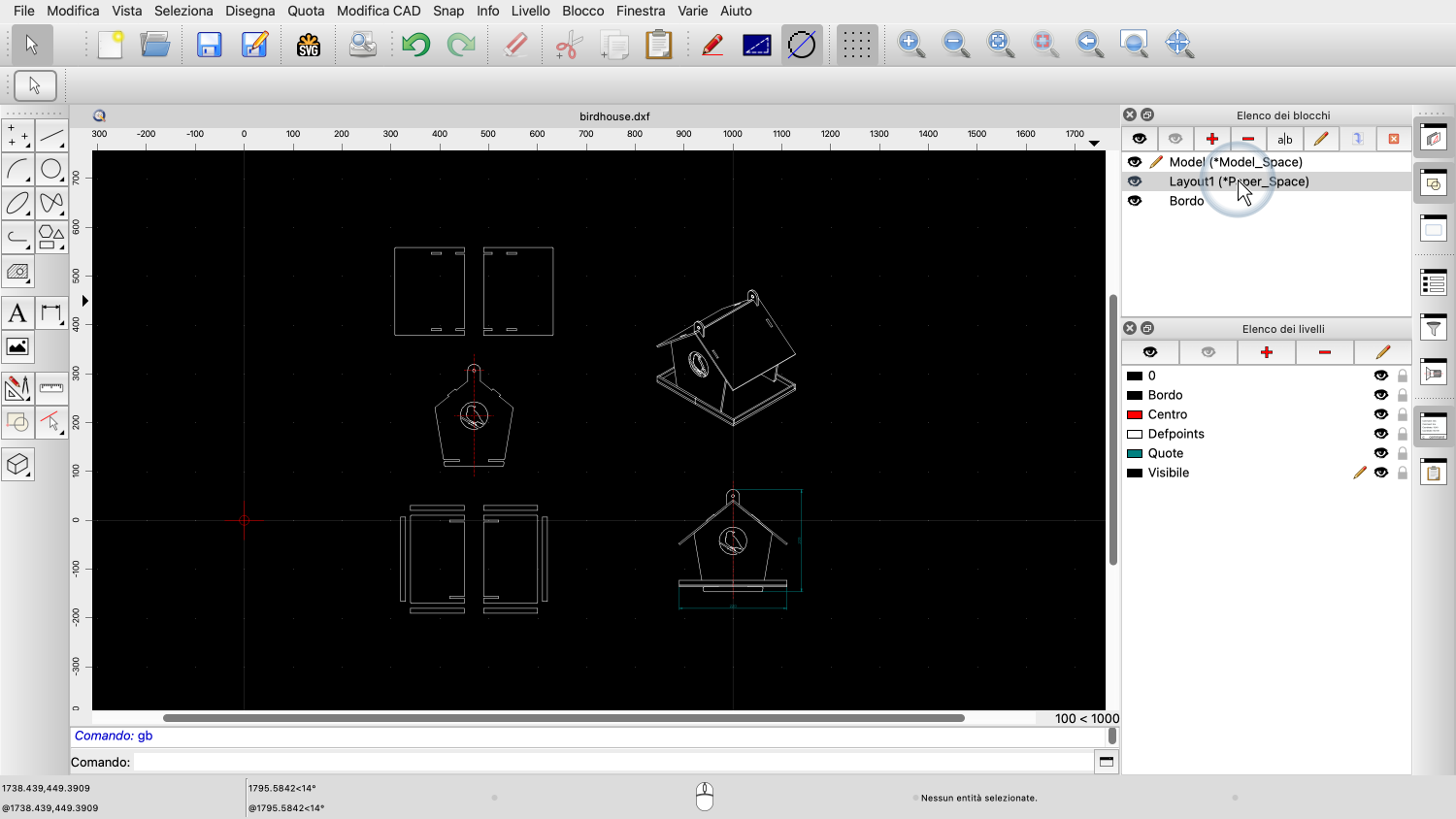 I nuovi disegni creati con QCAD contengono già un blocco di layout.