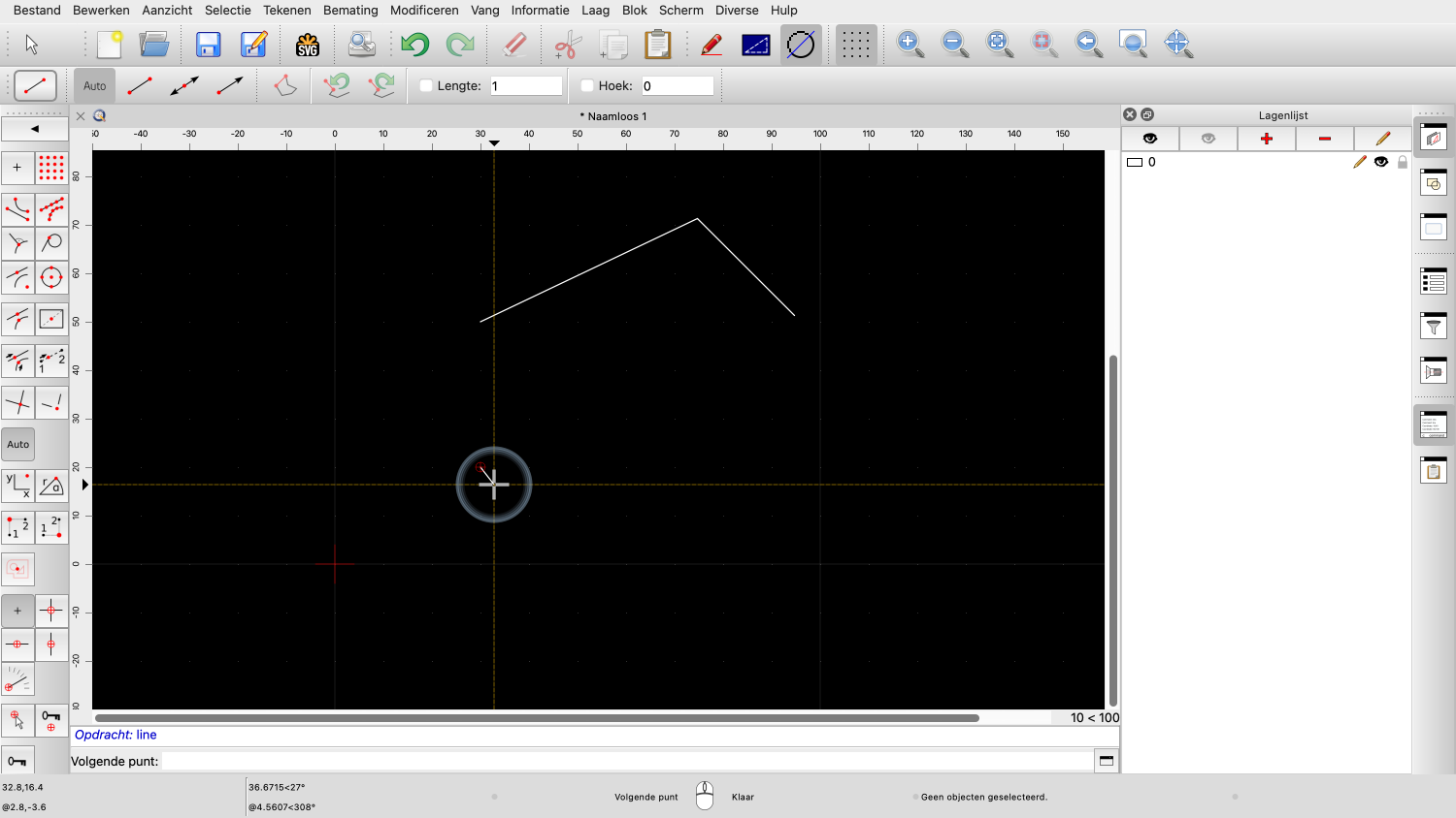 De lijn is nu toegevoegd aan de tekening, net alsof we op die exacte positie in de tekening hadden geklikt.