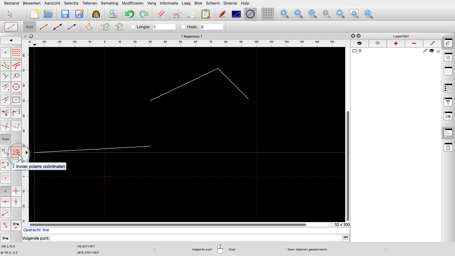 Dit is niet de enige manier waarop we coördinaten kunnen invoeren of hoe lijnen met een gegeven lengte en hoek geconstrueerd kunnen worden.